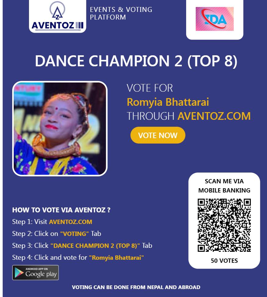 उनलाई इभेन्ट एण्ड भोटिङ प्लेटफर्म एवेन्टोज तथा ग्लोबल पे र इसेवाबाट भोट गर्न सकिन्छ ।