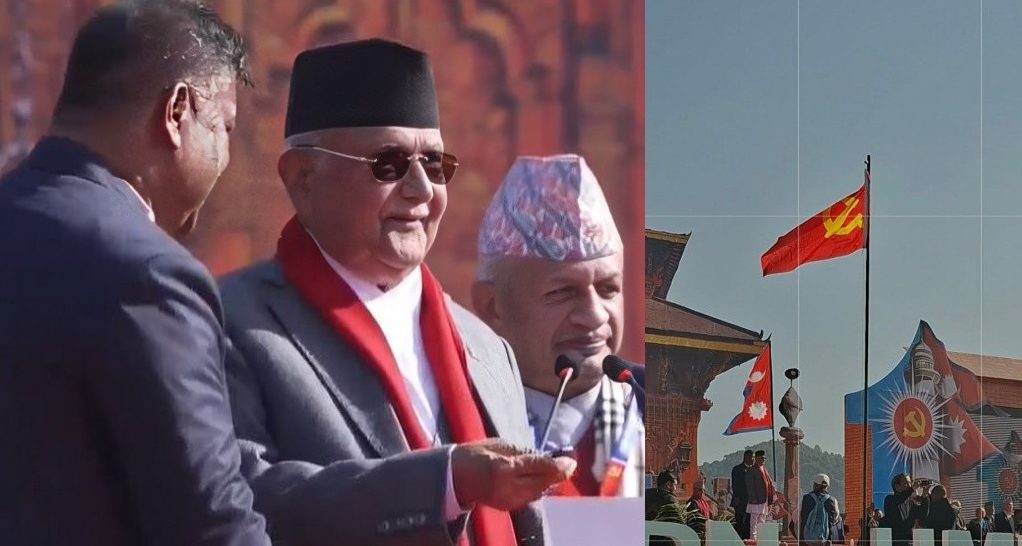 नेकपा एमालेको ११ औँ राष्ट्रिय महाधिवेशन ओलीले रिमोटबाट झण्डा फहराएर उद्‌घाटन