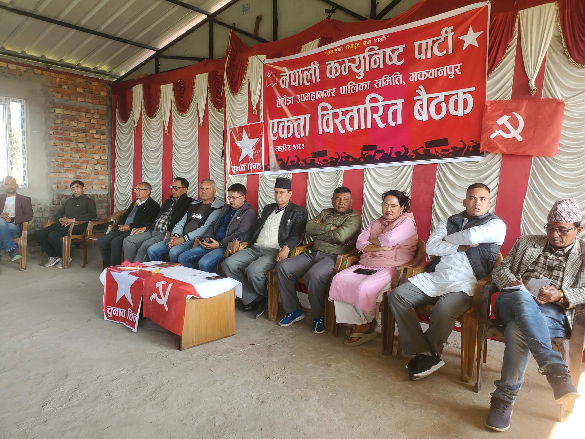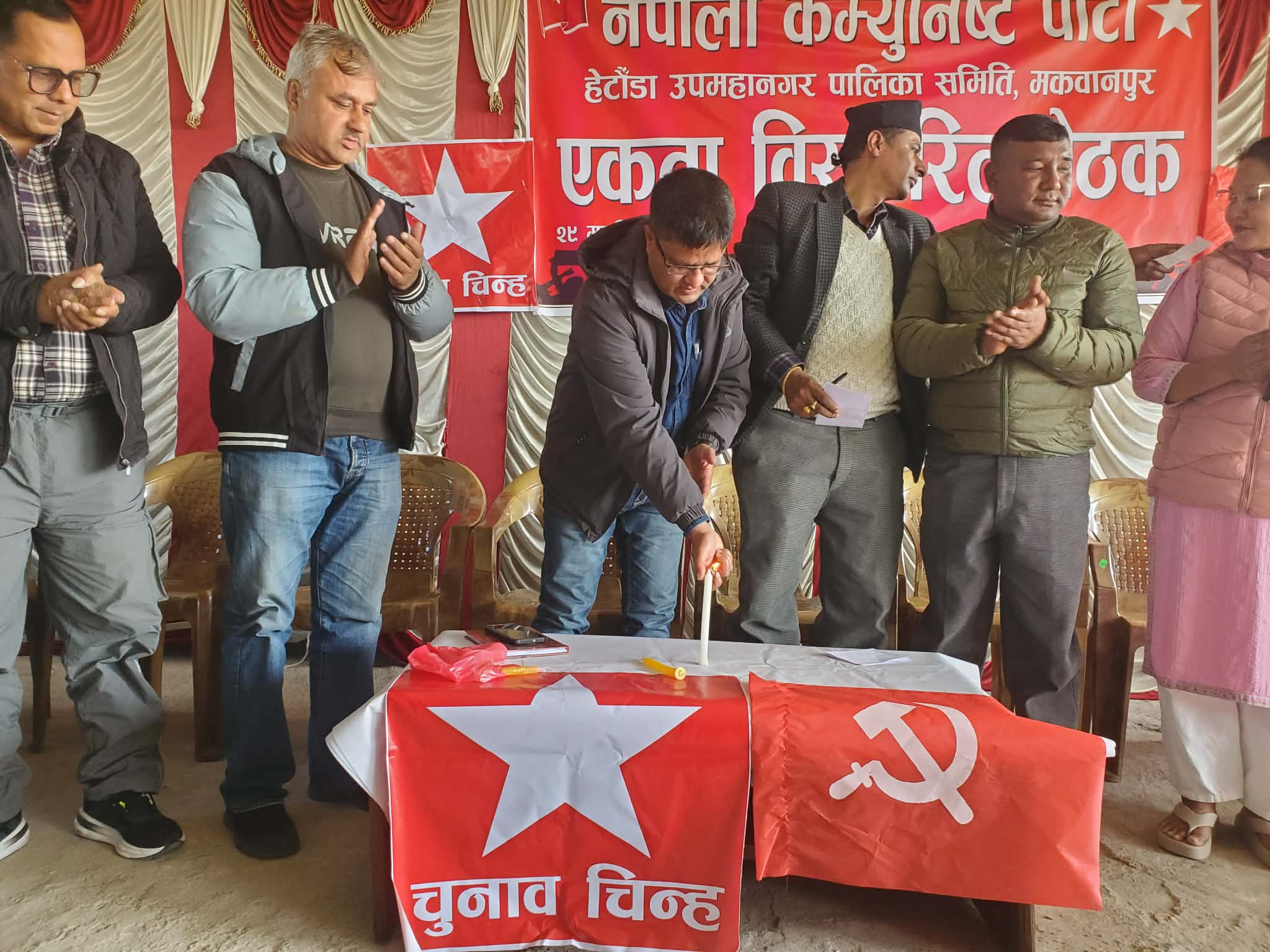 नेपाली कम्युनिस्ट पार्टी हेटौंडा उपमहानगरपालिका समितिको एकता विस्तार बैठक सम्पन्न भएको छ। बैठक नेकपा माओवादी केन्द्रका नेता प्रदीप अर्यालको सभाध्यक्षतामा तथा संविधानसभा सदस्य प्रल्हाद लामिछानेको प्रमुख आतिथ्यतामा सम्पन्न भयो।