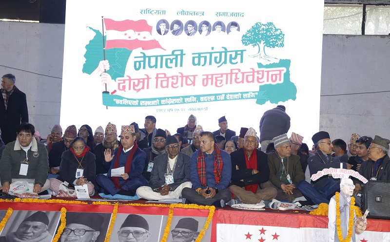 नेपाली कांग्रेसकाे विशेष महाधिवेशन भाेलिसम्म लम्बिने भएकाे छ । महामन्त्रीद्वय गगन थापा र विश्वप्रकाश शर्माका प्रतिवेदनमाथि छलफल चलिरहेकाेले बैठक भाेलिसम्म लम्बिएकाे विशेष महाधिवेशन प्रचारप्रसार उपसमितिका सदस्य सचिव माधवप्रसाद चम्लागाईंले बताउनुभयाे ।