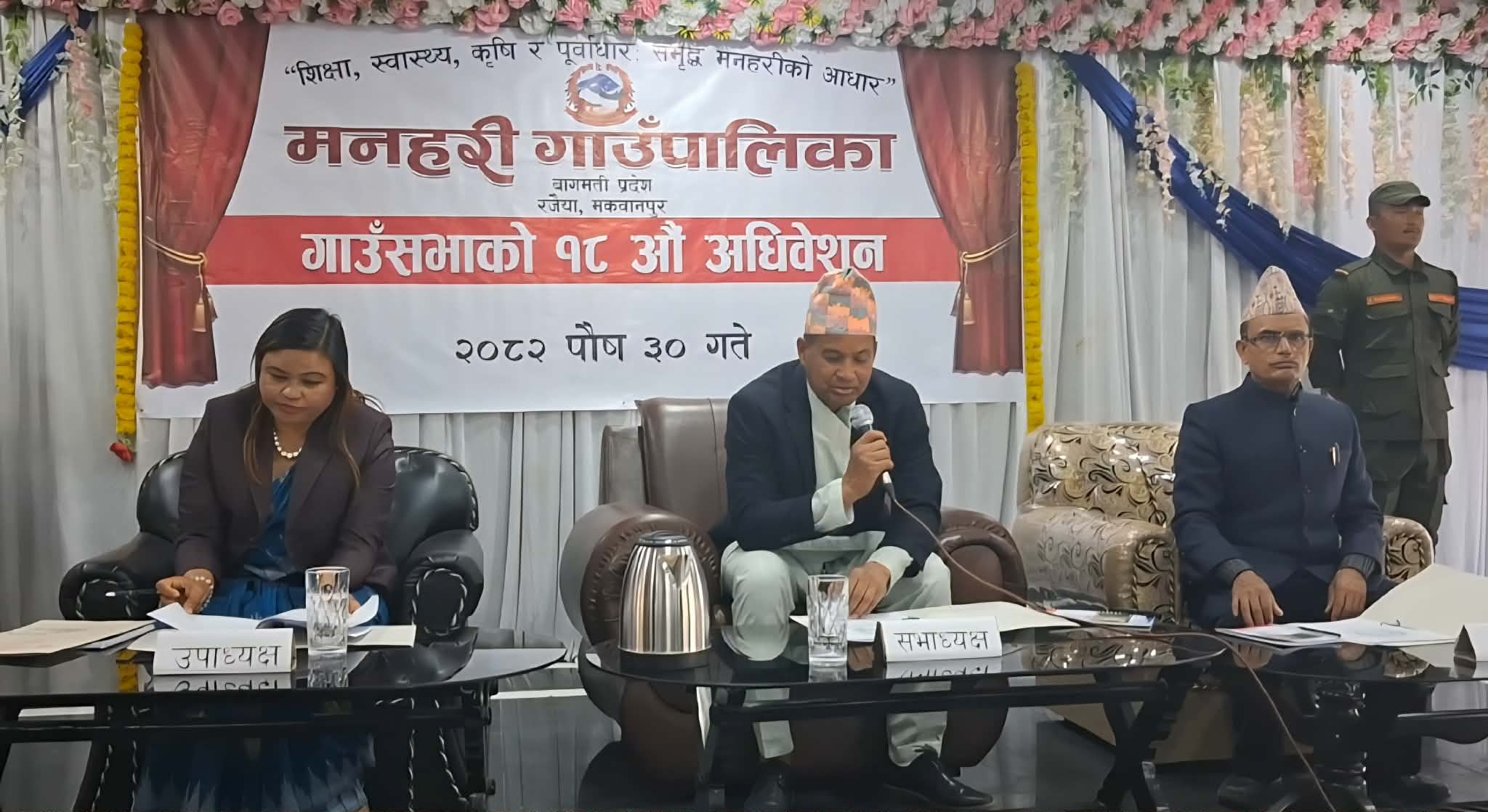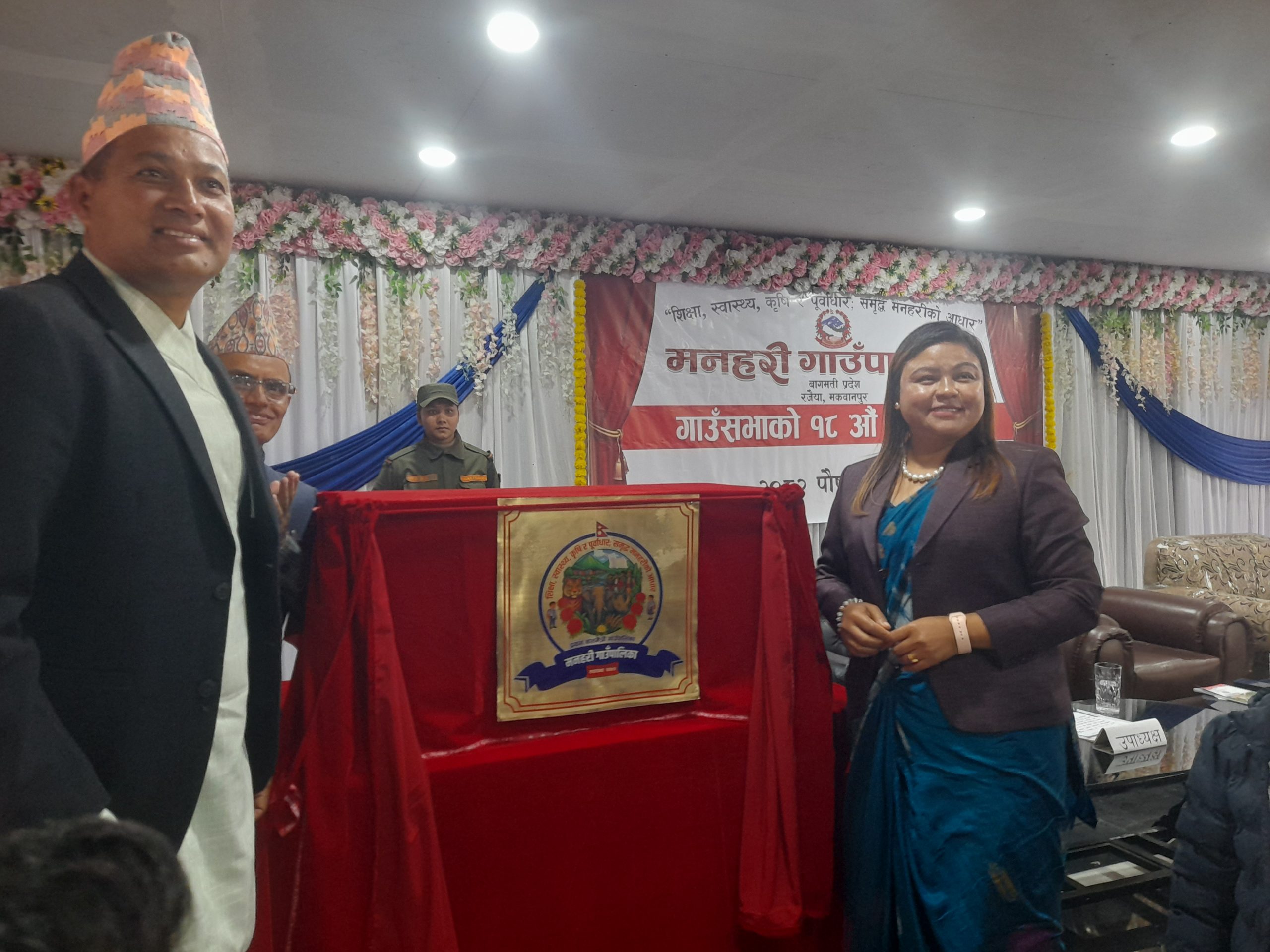 मनहरी। मकवानपुरको मनहरी गाउँपालिकाको प्रतीक चिन्ह सार्वजनिक गरिएकाे छ । बुधबार गाउँपालिकाकाे १८ ओैँ अधिवेशनकाबीच चिन्ह सार्वजनिक गरिएको हाे ।