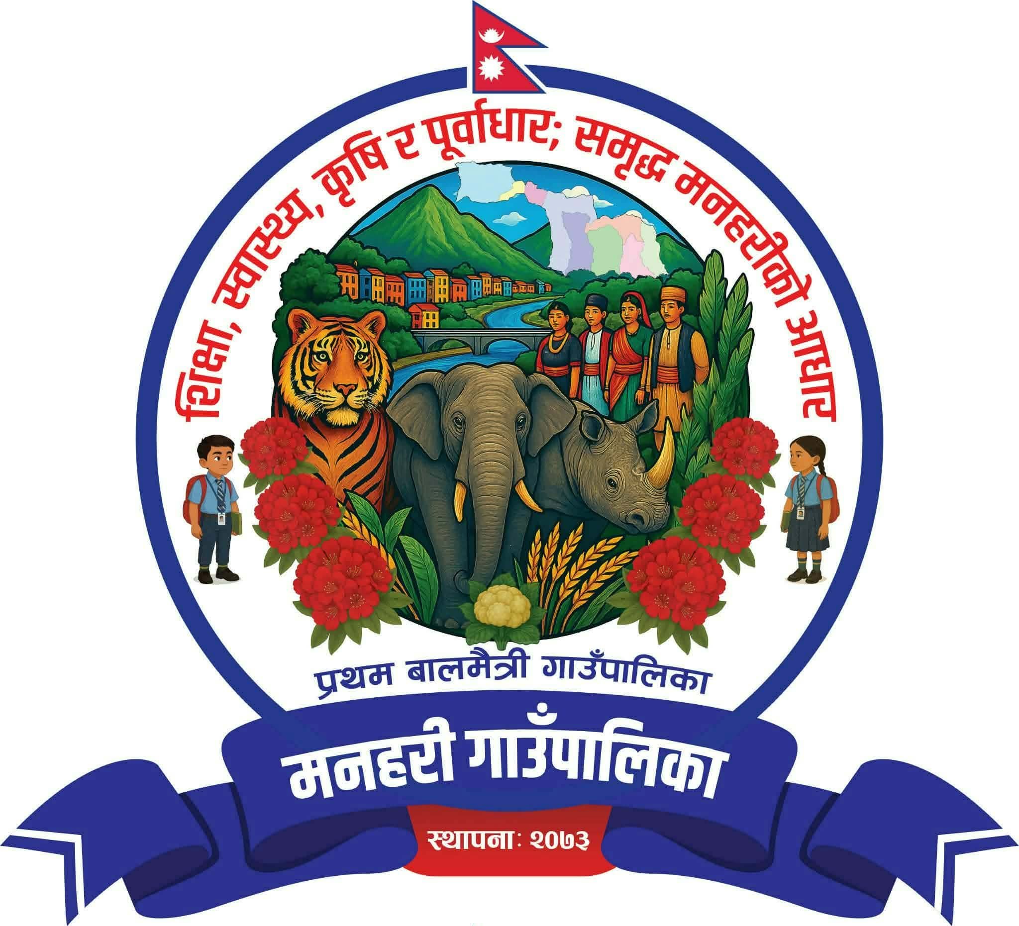 लोगोमा उल्लेखित बाघ, हात्ती, गैंडा जस्ता वन्यजन्तुहरूले मनहरी क्षेत्रको प्राकृतिक सम्पदा, जैविक विविधता, र चितवन राष्ट्रिय निकुञ्जसँगको सामीप्य झल्काउनुका साथै महिला र पुरुषको समूहले विभिन्न समुदायको प्रतिनिधित्व गरी समावेशी विकास र सामाजिक एकता देखाउने लोगो निर्माणकर्ताको भनाइ छ ।