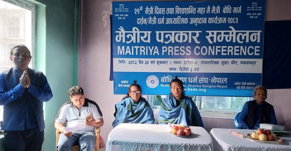 हेटौँडा–४ स्थित हुप्र चौरमा आजदेखि चार दिनसम्म “२१ औँ विश्वशान्ति महा मैत्री बोधि मार्ग दर्शन तथा मैत्री धर्म आध्यात्मिक अनुष्ठान” कार्यक्रम सुरु भएको छ।